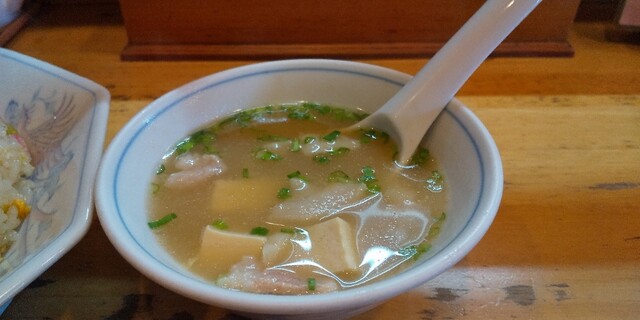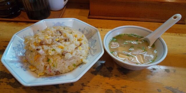 メニューを眺め、私は「チャーハンと半ラーメンセット(850円)」を、家内は五目そばをお願いしやす!