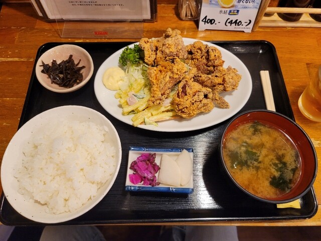 タルタルがたくさんかかった唐揚げが美...