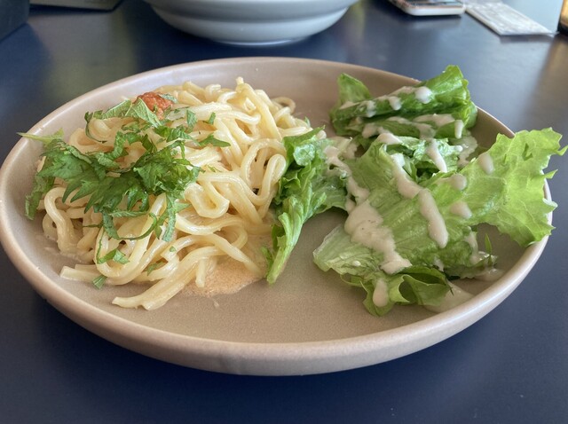 大皿に盛られているため「少ないかな?」と思えたビジュアルです。実際に頂いてみると、モッチリした食感のパスタがしっかりお腹にたまる印象で、見た目とのギャップが...