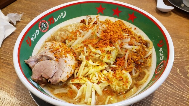 タレと旨味を凝縮したスープに特注の太麺を絡め、様々なトッピングを自分好みにチョイスして味をカスタマイズできる新コンセプトの麺料理「まぜそば」。豚骨、背脂、各種野菜を丹念に煮込んだスープに、食べ応え抜群の太麺とたっぷり野菜、分厚いチャーシューでガツンと胃袋を満たす「ラーメン」。ジャンクガレッジは、お客様の遊び心をくすぐるお店!ご来店される全てのお客様に美味しさの先にある、食の楽しさを感じて欲しい!