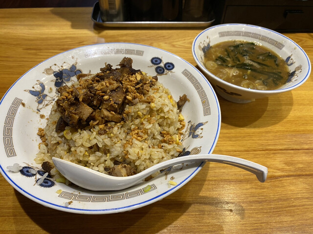 さそり固め950円(味噌チャーシュー)と半チャーハン420円を購入し店員さんに渡す