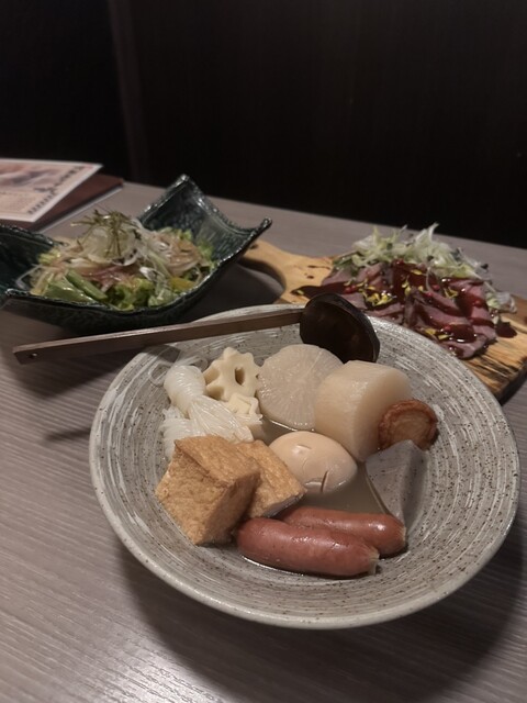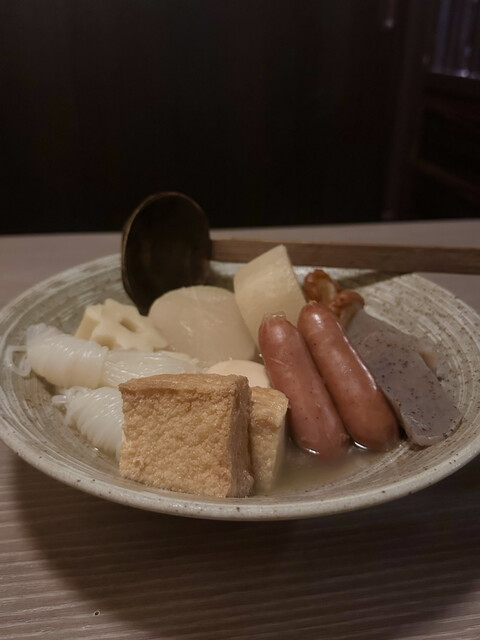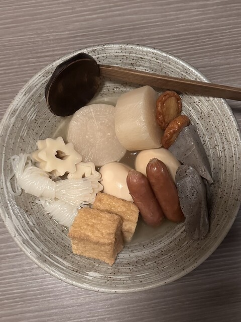 川越駅、完全個室 おでん食べ放題 傳 に行ってきました。 完全個室なので落ち着いた雰囲気で、自分達の空間を楽しむことができました。 その空間を邪魔しないようにする定員さんの配慮も素晴らしかったです。 名物のおでんは、澄んだ出汁の香りが立ち上がり、一口含むと優しい旨みがじんわり広がる完成度の... 詳細を見る