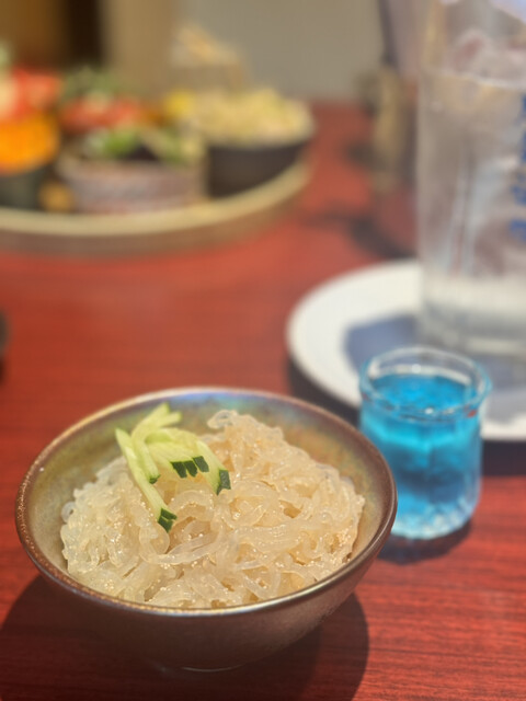 週末20時頃訪問です。お店に入ると2階に案内され、靴を脱ぎ隣の席とブラインドで分られた個室風な席に案内されました。卓上のメニューを見てスマホで注文です。