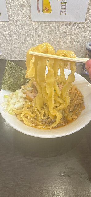 以前写真で見た、店主の手打ち極太平ちぢれ麺が気になっており、いざ食べに!