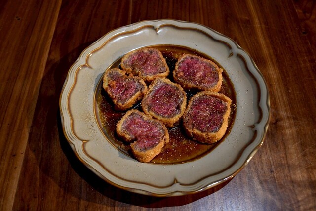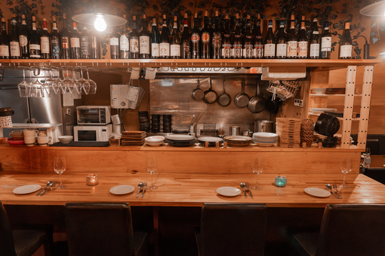 薄暗い照明でムードのある空間が広がる「ビストロ ヒロイン」。店内は落ち着いた雰囲気で、記念日やデートにぴったりですが、友達とワイワイ楽しむ食事にも合うお店でした。