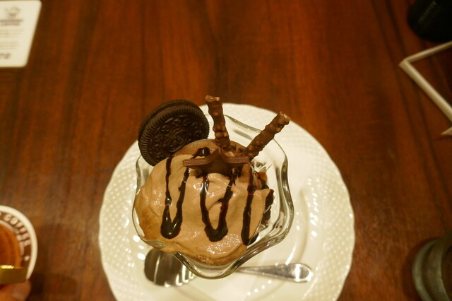 夕方に訪問しました けっこう埋まってましたね 店内冷房ガンガンです チョコレートパフェとアイスコーヒーを注文です アイスコーヒーはスグに到着 アイスコーヒー飲むと体がひん... 詳細を見る