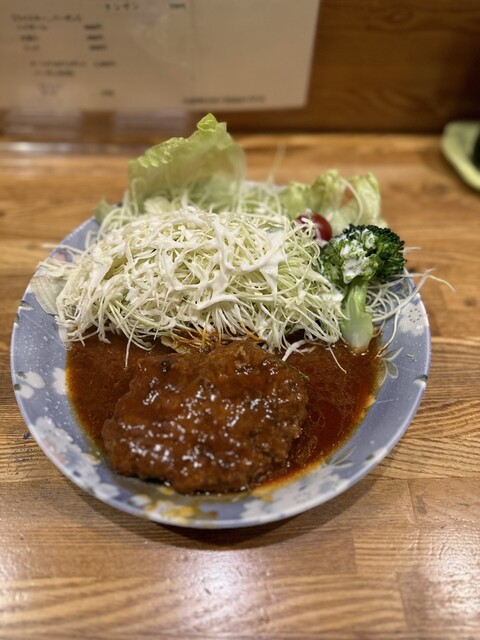 まずはハンバーグ。「うちのは、でかいよ〜」と...