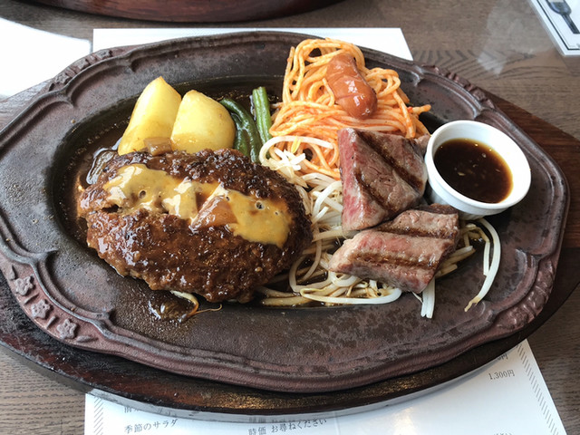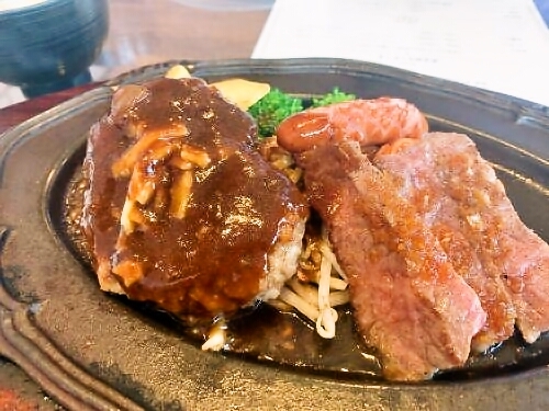 今日は無難にステーキとハンバーグのランチセットにしました。