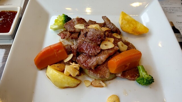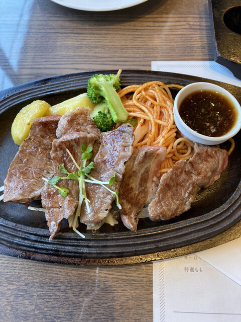 買い物がてらたまたま入ったこちらのお店。お店に入ると磨かれた鉄板があり、カウンターでステーキが頂けるお店のようです。いつか鉄板焼きも利用してみたいです。 今日は無難にステーキ... 詳細を見る