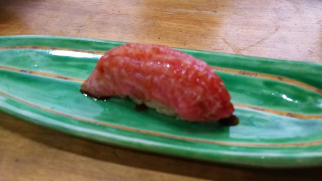 お寿司に関してもこれらの鮮魚がタネになるのですから否が応でも期待が高まるところですが、赤酢を用いたキレの良いシャリで握ってくれます。