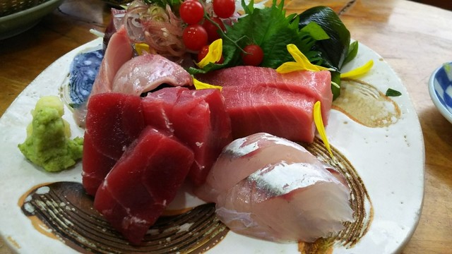 厳選仕入の大間のマグロや関サバなどと、その季節の旬のものが大ぶりに切りつけられて提供されます。
