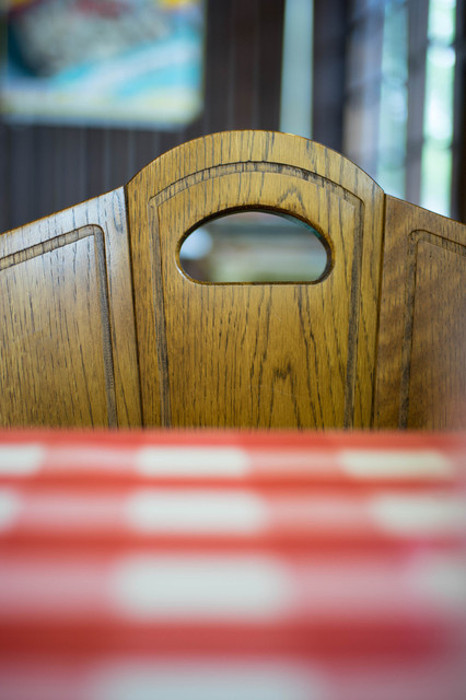 椅子(いす)にも木(き)の温(ぬく)もりが感(かん)じられ、
