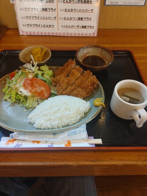 ランチにはお味噌汁、サラダ、漬け物も付いてきます。
