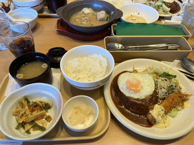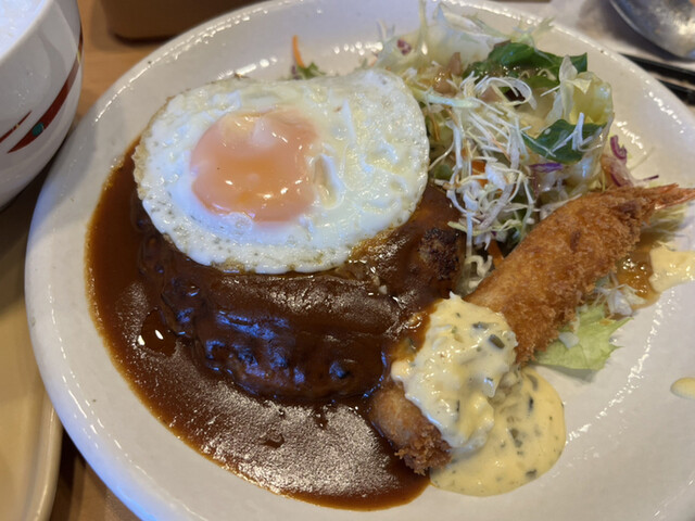 チーズインハンバーグ&海老フライ定食の和風セットバージョンをオーダー。