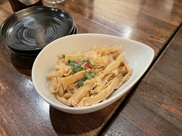 食券を入口で買いうとやや照明を落としたムーディーな店内。黒と木材の色味がシックです。 ひのでやラーメンを注文。柔らか穂先メンマと2種類に切り分けられた白ネギ、卵と大きな海苔。... 詳細を見る