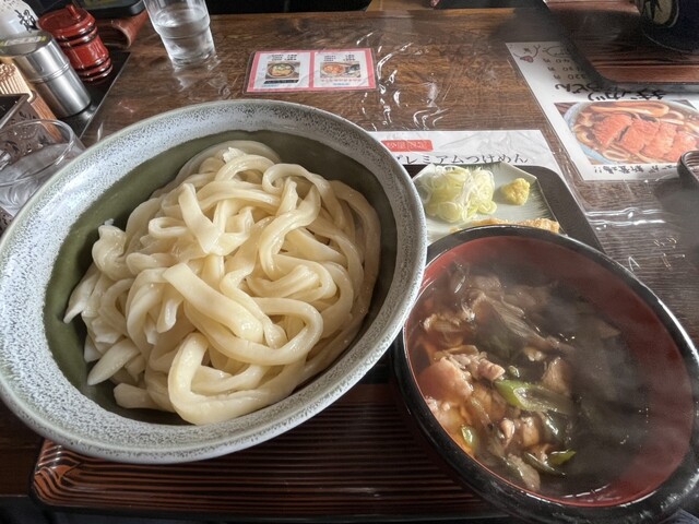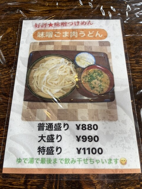 ごまねぎうどん(定番人気らしい)と味噌ごま肉うどんを注文しました。すくいあげると麺1本1本の重さがお箸...