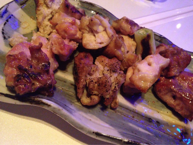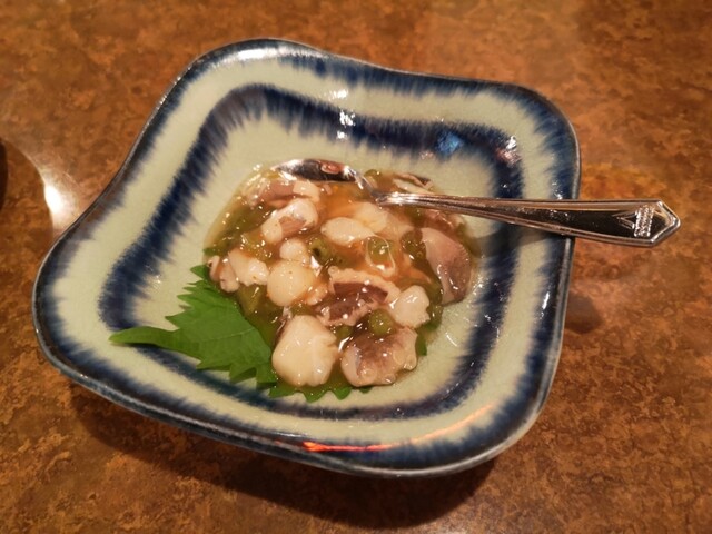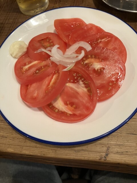 ツマミはトマトスライス、つくね、タコ唐揚げ。