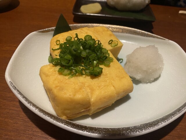 私はまだ飲みながら懐かしの玉子焼きと根らっきょうの生ハム巻きを。