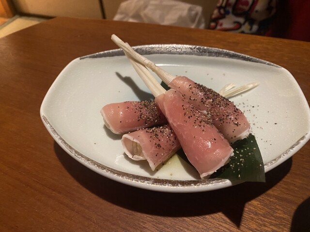 本日のおすすめにあった根らっきょう生ハム巻き、