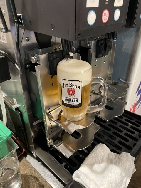 飲み放題は自分で次に行くタイプ!その隣にはなんとお菓子もある!よっちゃんイカとか柿ピーなんかもあって面白い!