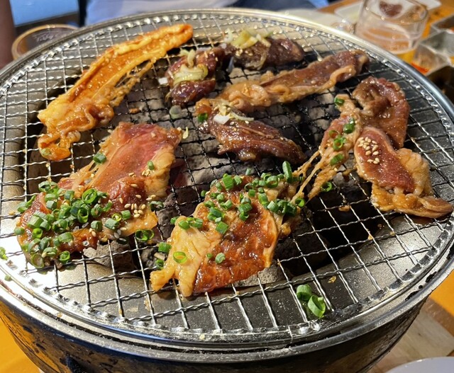 いろんなお肉がえり、炭で焼いてどれも美味しい。ご飯も進みますね。