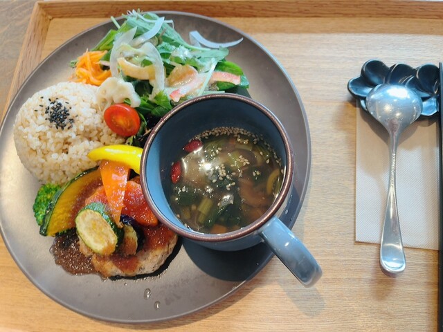 前回、近くに来た時は定休日で訪れることができなかったので、今回が初めての来店。楽しみにしていた薬膳ハンバーグ(ドリンク付き)をいただきました。 こちらのハンバーグは、埼玉県産の豚肉や深谷リーキ、田中農場さんの卵、椎茸、山芋、ミカンの皮、黒木耳、玄米粉、おからなど、普段のハンバーグにはあまり使われな... 詳細を見る