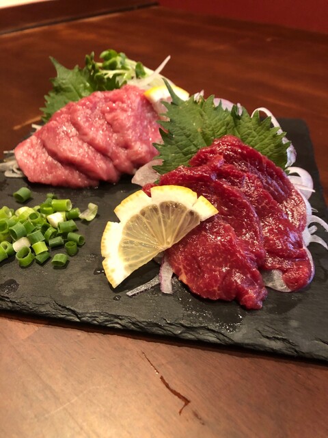 霜降り&赤身の馬刺しの盛り合わせ、こうひょ... (by お店)