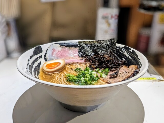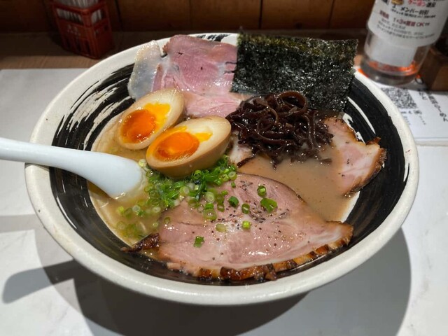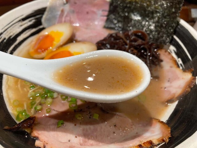 【限定】もつ煮ラーメン 濃厚なとんこつスープに、ぷるっぷる& とろっとろの“もつ煮”がダイブ ただの具じゃない。 スープに溶け出したコクと旨味が、 レンゲを動かす手を止めさせない… この旨みのかたまり…ズルいでしょ と、店内には心の声がダダ洩れ 今回は2人で訪問 こちら... 詳細を見る