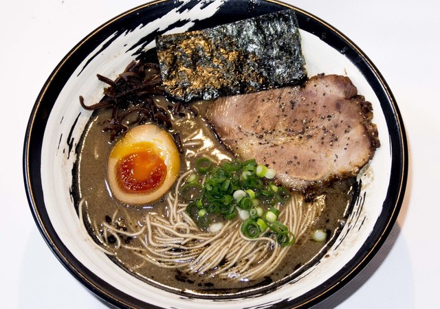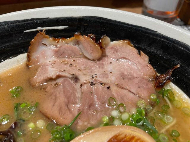 レアチャーシューを追加!盛り付けすることにいたしました。メインメニューはノーマルの『白』。焦がしニンニク油をたらした香ばしい味の『黒』です。 濃厚スープながらもくどくないのが特徴です。 麺は強力粉をベースに全粒粉をブレンドした風味ある自家製麺を使用しています 。 今後限定メニューのお知らせや臨時休業などのお知らせはFacebookかGoogleMapsを参照してください