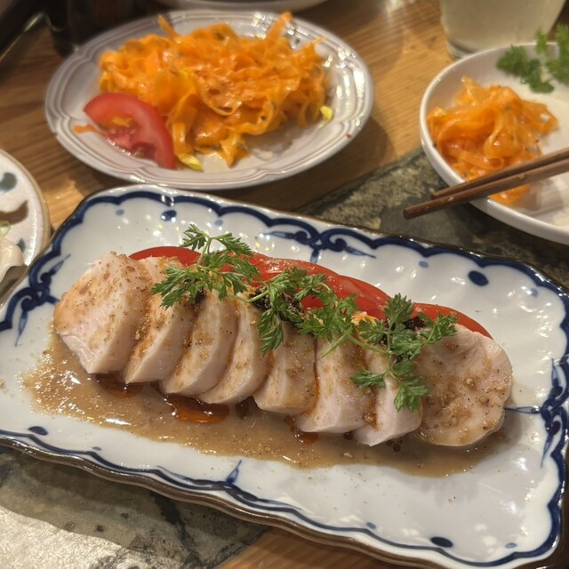 人参サラダ初めて食べましたがやみつきでした。お通しのごま豆腐?は塩がかかっていたのでそのまま頂きましたが大好きな味でした。