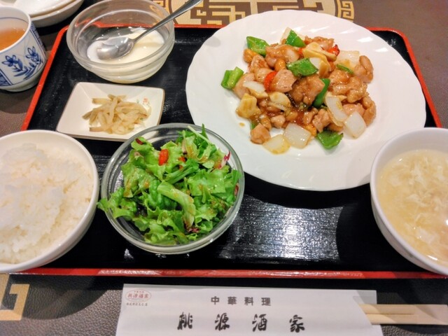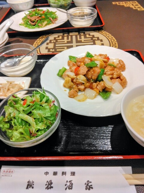 西武所沢S.C.の8階のレストラン街(と言っても4店舗しかありませんが…)に入る『桃源酒家』では、とっても上質な中華料理が味わえます。それはもう、中華料理を超えた中国料理…本場の味で本格的に美味しいのです!昼夜問わず、舌の肥えた年配の方々で、意外と賑わっています。そして、価格も意外とリーズナブル♪お得なランチセットは、メイン・ごはん・サラダ・ザーサイ・スープ・杏仁豆腐がついて\1,380也…メインは、鶏肉とカシューナッツ炒めをいただきました♪食べやすいサイズにカットされた鶏肉と野菜…各具材の隅々にまで、しっかりと味がついています♪その味付けも濃すぎず、素材の味と食感がきちんと残る絶妙な油通し…なので、野菜も立っている…ザーサイも小さくカットされ、何だろう?この味付け…味噌?…食べやすく美味しい…少ないですが、これでごはん3口はイケます(^_^)それに、タマゴスープが優しくまろやかなこと…杏仁豆腐もありがちな作られた味でなく、すっきりまろやか喉越し良し!これはぜひコースで楽しみたいものです!ちなみに、円卓個室、ありました!忘年会、企画しょっと!