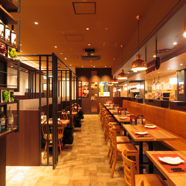 グランエミオ所沢/国産牛100%のジューシーなハンバーグをはじめ、前菜やアラカルト、おつまみまで豊富に揃い、昼飲み/夜の宴会にもぴったりです。ワインを中心に30種以上のドリンクを取り揃え、思い思いの一杯をお楽しみください。広々とした店内にはテーブル席やボックス席あり/お一人様からママ友/会社の集まりまで幅広いシーンに対応。ランチもディナーも気軽にご利用いただけます。