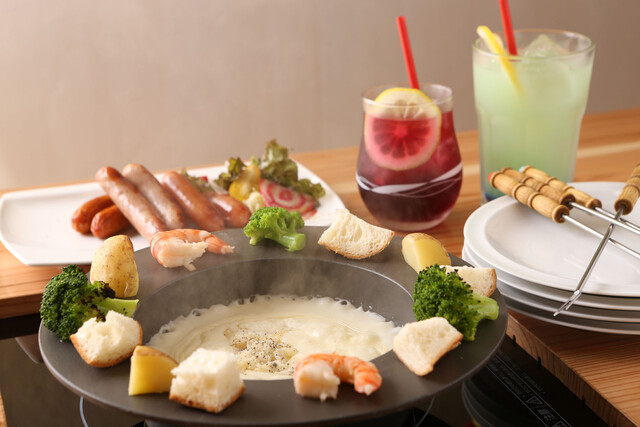 ぜひお召し上がりいただきたいのは、チーズフォンデュ食べ放題セット!満足感たっぷりのお得なメニューです◎また、窯焼きピッツァやラクレットチーズなど、こだわりのチーズ料理をご用意しています。デザートには濃厚バスクチーズケーキや焼きたてアップルパイも♪店内には多彩な座席を完備しており、女子会やご家族連れも大歓迎、一部ペット(ワンちゃん)同伴可能エリアもあります。◎記念日などにデザートプレートもございます