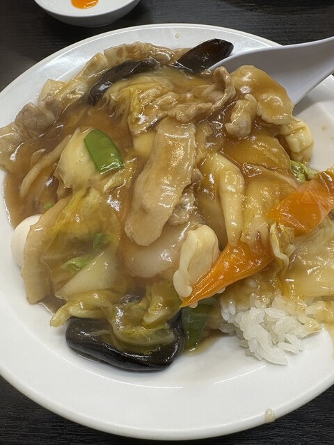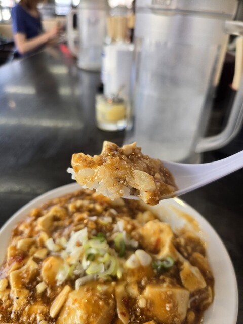 GWの賑わう13時頃に到着しましたが、待ち6組ながらも回転が早く、15分ほどでカウンター席へ案内されました。 今回は、焼肉丼、麻婆豆腐丼、キクラゲと玉子の炒め、海老チャーハン、そしてジャンボ餃子を注文。 注文から5分も経たないうちに焼肉丼が運ばれてきました。食欲をそそる絶妙な味付けの焼肉は、... 詳細を見る