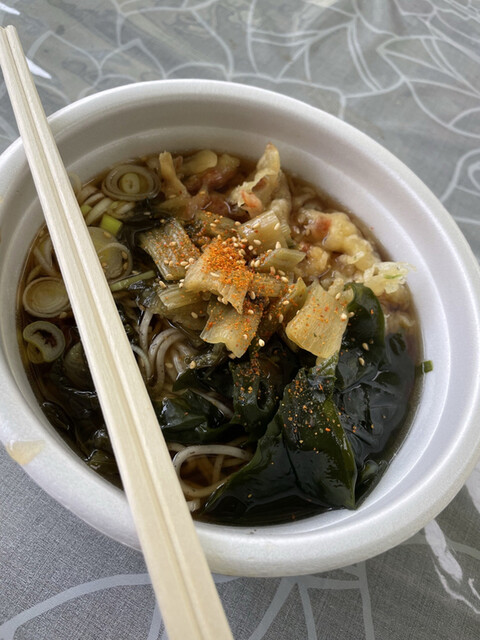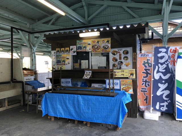 (駅構内で、立ち食い。お店の前に数席。駅前のベンチも使用可能。) |