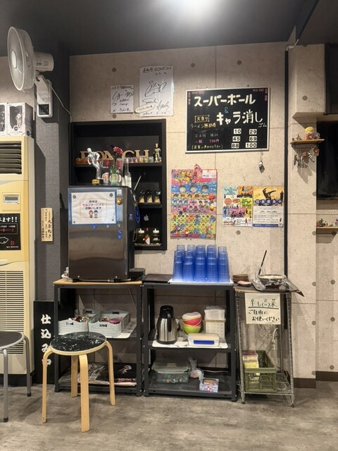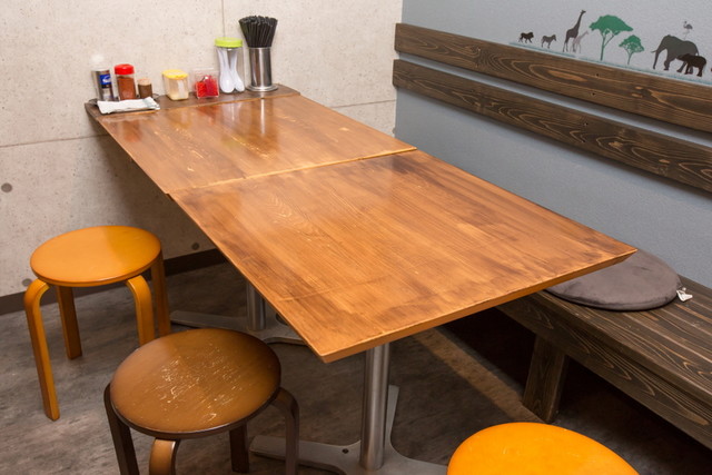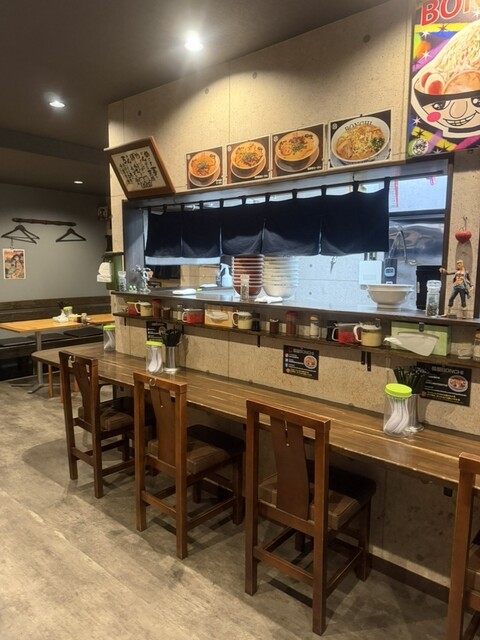 カウンターとテーブル席のあるラーメン屋さんです。