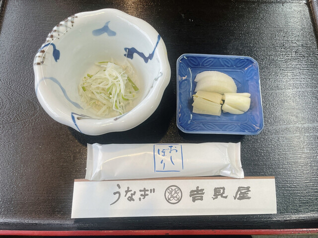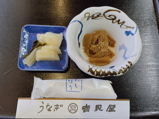 うな重、カット肝吸い、小鉢、漬物つき