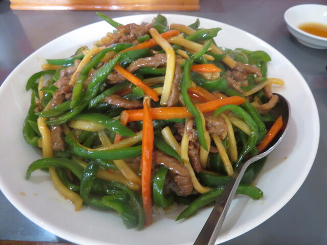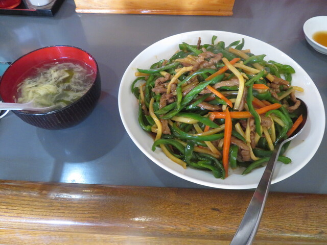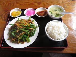 青椒肉絲がとても気に入っていて・・・メニューには麺とのセットが多い(とても安い)のですが、私はラーメンは好きではないし・量も多いのは嫌で、青椒肉絲定食を好んでいました。