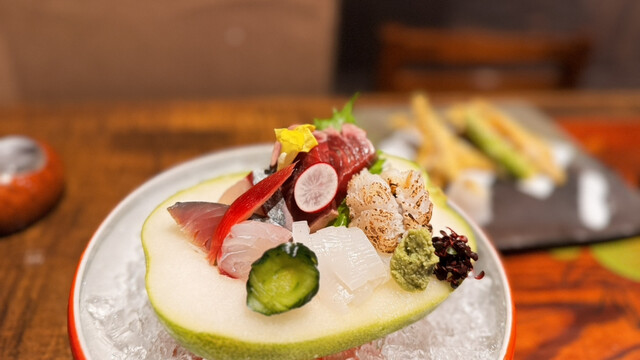 大津駅前の地元で愛される大衆居酒屋です。全国各地の新鮮食材と、近江牛やその日の朝市場で仕入れた魚介など地元食材を使った郷土料理や豊富な一品料理とともに、滋賀の地酒が堪能できます。店内は大津の町家をイメージしたモダンな空間で、大津の伝統民画である「大津絵」が描かれたテーブル席の他、最大25名まで入れる個室もあり、忘年会・新年会・歓送迎会など各種ご宴会にもおすすめです。