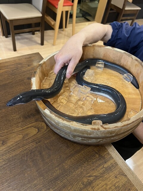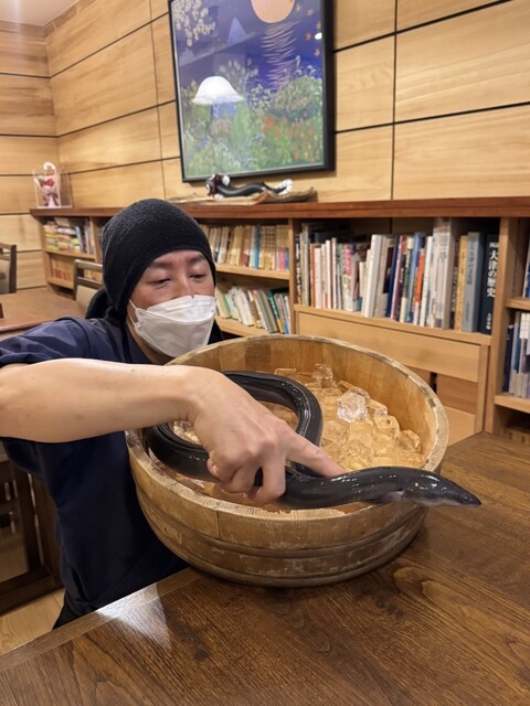 生きてる鰻に恐々...