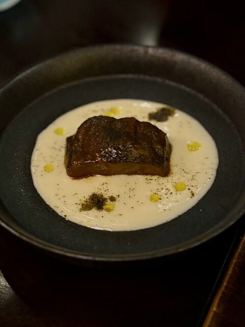 贅沢にも骨付きの塊肉をそのままオーブンでじっくり火入れしジューシーに仕上げた近江牛の溢れる旨味を是非ご堪能下さい♪ 前菜等もこのコースの為、特別に考えた一品となっております。 この機会にどうぞ召し上がってみて下さい!