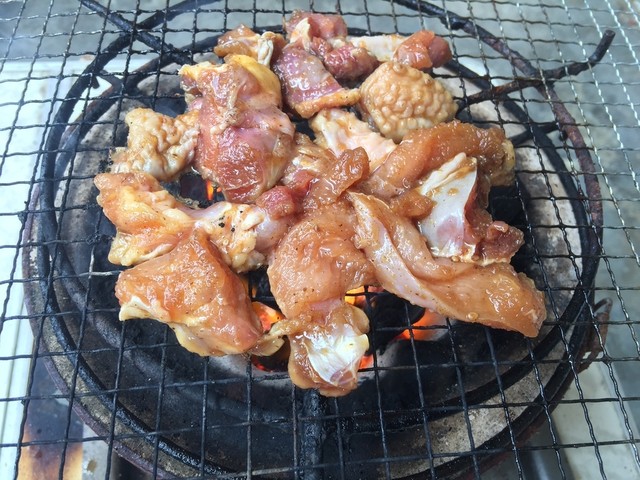 事前に電話しもも肉とむね肉の藁焼きを注文。