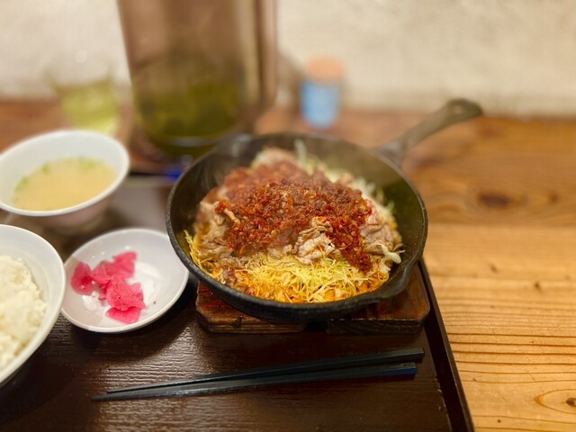 伝説のトンテキ 200g 1,000円 平日16時。夜の部16時からで1番乗り! 食券を買って、8席しか無いカウンターに座ります。 食券を渡すと、お兄さんが厨房でジュウジュウとトンテキを作り始めます。 5分後に着丼。 熱々鉄板にグツグツのトンテキが提供されます! 湯気すごーーーー!... 詳細を見る