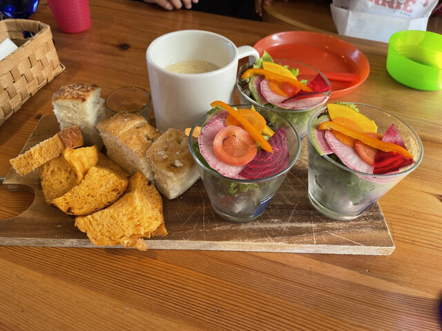 パンはおかわり無料で、くるみパンとローズマリーのパンをおかわり