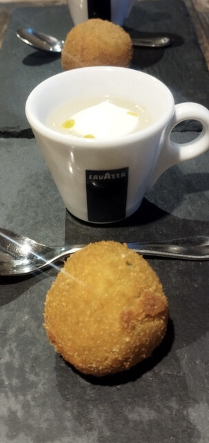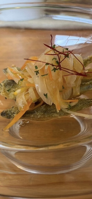 家族の誕生日で初めておまかせでオーダー。良い意味でパスタが美味しい店という認識が覆りました! お品書きは以下の通り(^^) ・瞬間燻製したサバとキュウリのエクレア ・フォアグラのクロケットとヴィシソワーズ ・琵琶湖の小鮎のカルピオーネ(南蛮漬け) ・モッツァレラブラータと芝尾トマトのカ... 詳細を見る