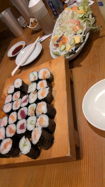 お寿司にサラダに天ぷらにと色々注文していただきました。どれも普通においしかったですが、特記することはないです。お寿司のおいしい居酒屋さんで、周りはなかなかにぎやかでした。色々注文し... 詳細を見る