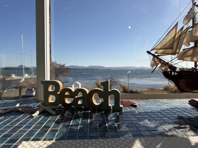 全席から琵琶湖が見える、マリンブルー×ホワイトのおしゃれ空間