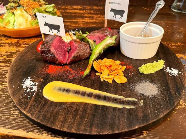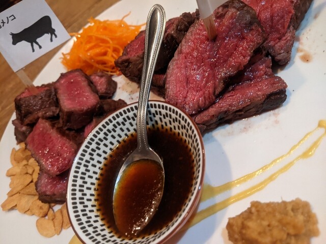 お肉はアンガスビーフのモモとUS厚切り牛タンの2種類だけを頼みましたが岩塩、ハニーマスタード、ステー...