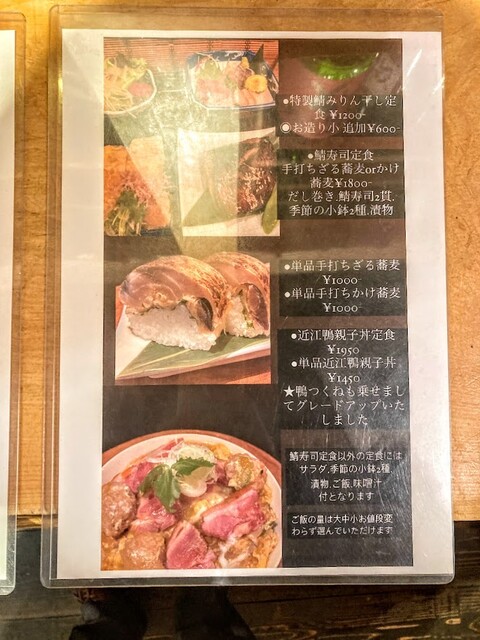 両親と滋賀で落ち合った際のランチに伺いました。割と価格帯は高めです。お蕎麦は両親がいただきましたが、あまりお口に合わなかったみたいです。鯖寿司とだし巻きはとにかく大きいです。鯖寿司は美味しかったようで...