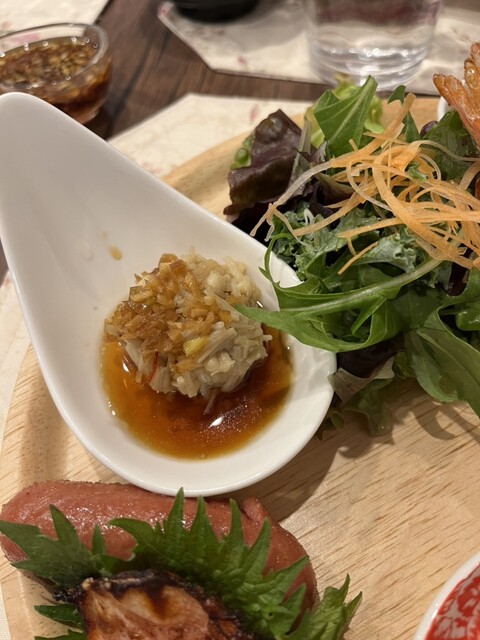 大津市の大石東。厄除けで有名な立木観音の近く。駐車場あり。ただし、進入路も駐車場も狭いので、運転注意。週末に当日予約して訪問。先客、地元の方が1組。後客、地元の方が1組。この辺りにはお店が少ないから、地元のコミュニティのような役割を果たしておられるようだ。外観も内観もお家をリフォームした感じ。温もりを感じる接客と雰囲気。テーブル席とカウンター席があり、テーブル席に案内してもらった。注文したのは、